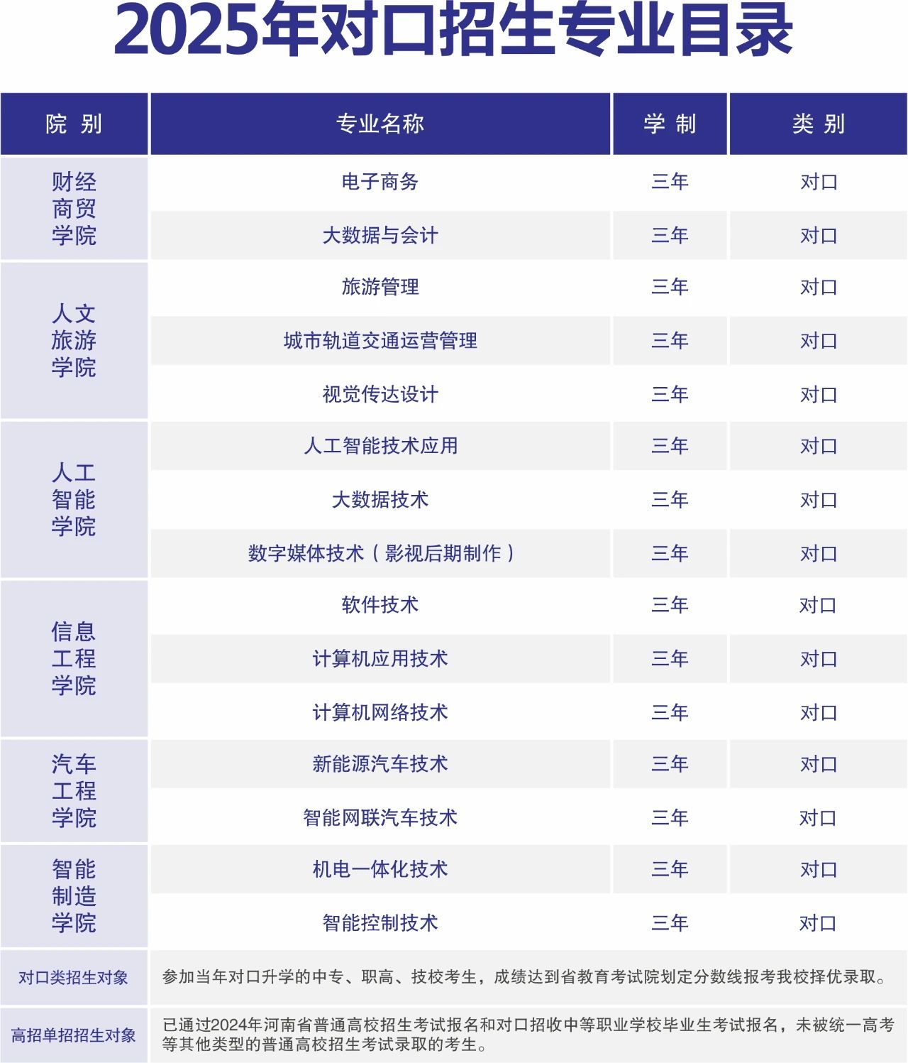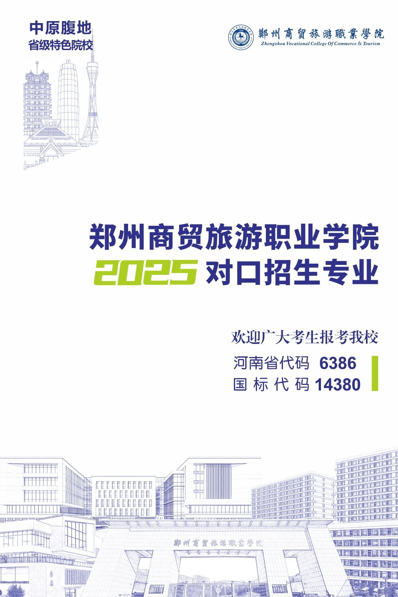 郑州商贸旅游职业学院创办于1996年,2011年经河南省人民政府批准、教育部备案成为具有独立颁发国家高等教育学历证书资格、纳入全国统一招生计划的民办全日制综合性普通高等职业院校。学院以“厚德强能,日新月异”为校训,立足河南、面向全国,培养高素质技术技能人才。以商贸旅游、人工智能、数字经济、新能源汽车为办学特色,设有财经商贸学院、人文旅游学院、人工智能学院、信息工程学院、智能制造学院、汽车工程学院等6个二级学院。