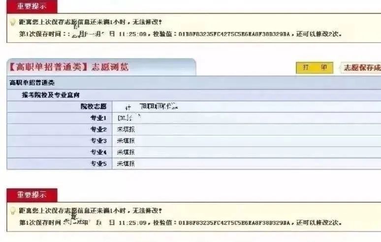 2.志愿保存成功后,在规定的时间内考生还有2次修改志愿的机会。