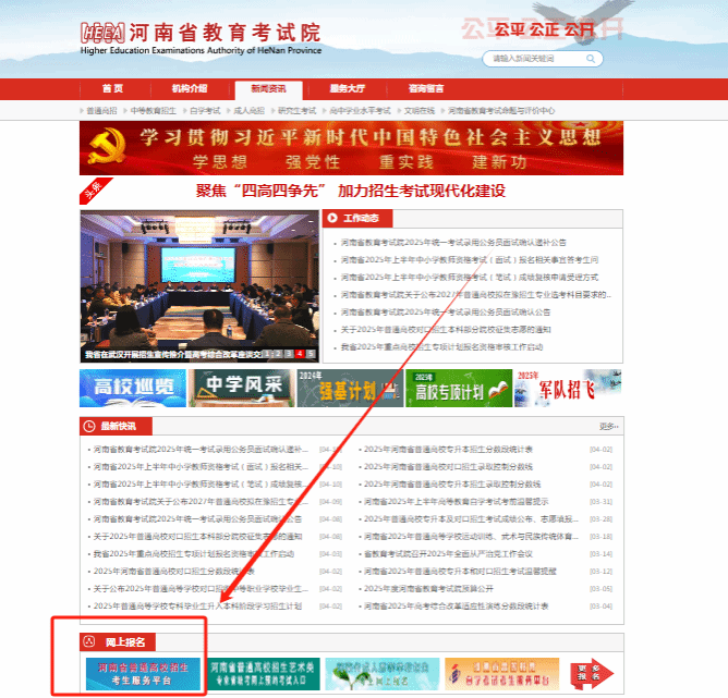 考生登录河南省教育考试院网站(https://www.haeea.cn),然后点击首页服务大厅中的“河南省普通高校招生考生服务平台"(https://pzwb.haeea.cn)。