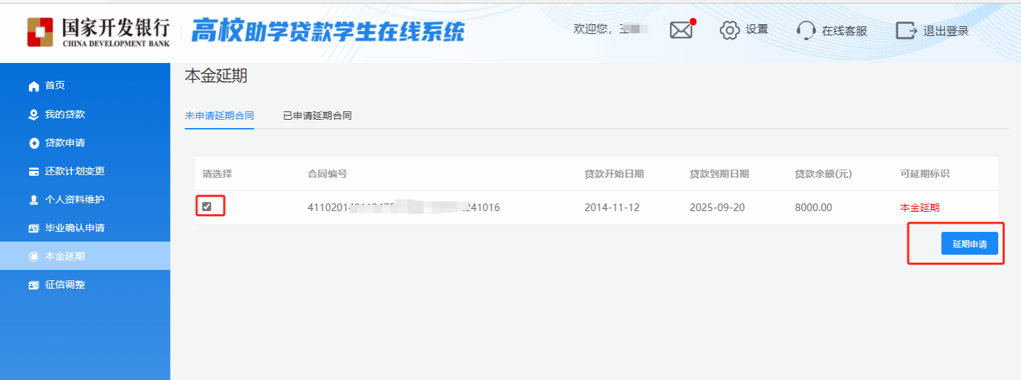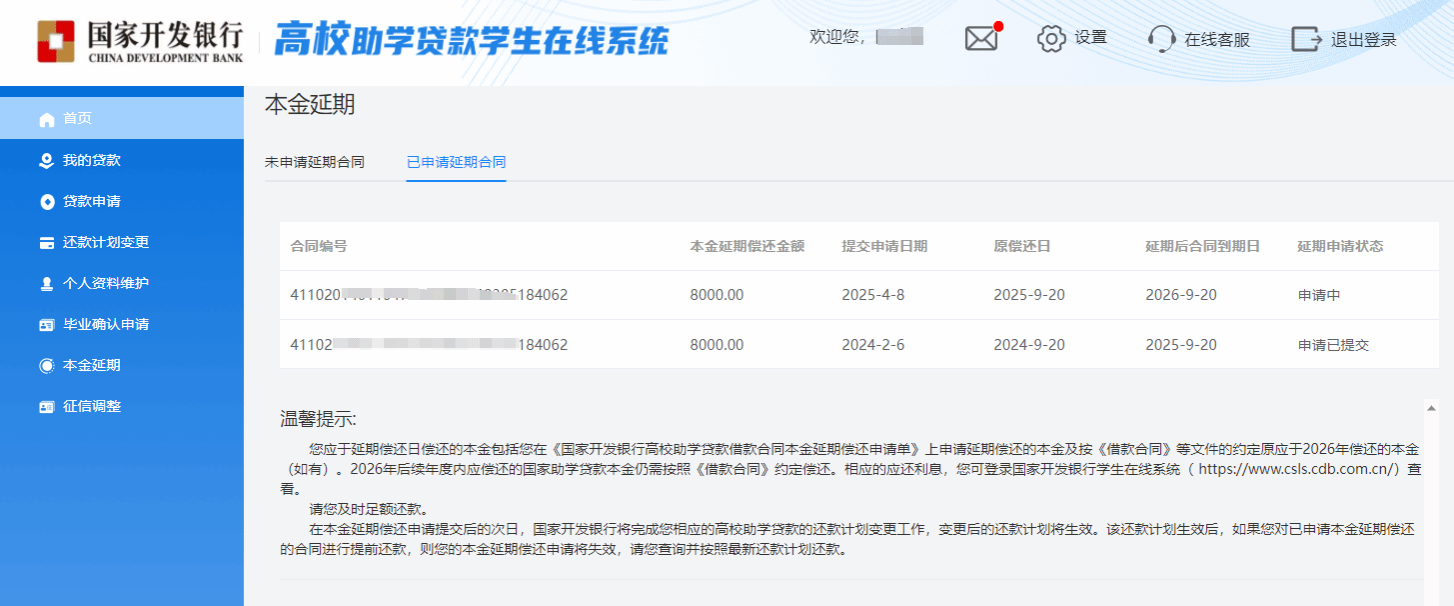 2.已申请“本金延期偿还”的学生,不得撤销延期申请,但在延期内可以申请提前还款。