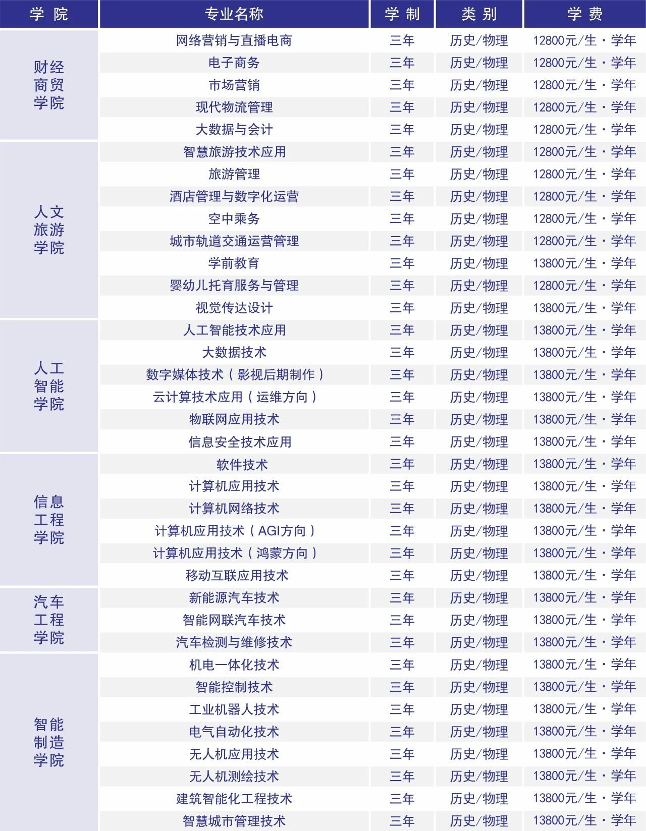 郑州商贸旅游职业学院2025年统招招生专业目录