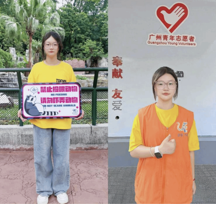 吴程悦,2025年暑假积极参加了广州市动物园组织的志愿者活动。她主要负责劝阻游客投喂动物、拍打玻璃等不文明行为,并为游客提供游览指引和动物科普讲解。她以友善而坚定的沟通方式,有效引导游客文明参观,既维护了动物福利,也丰富了游客体验。她在工作中展现出了高度的责任意识和爱心,用实际行动传播生态文明理念,彰显了新时代青年关爱生命、尊重自然、奉献社会的精神风貌,弘扬了人与自然和谐共生的时代主题。