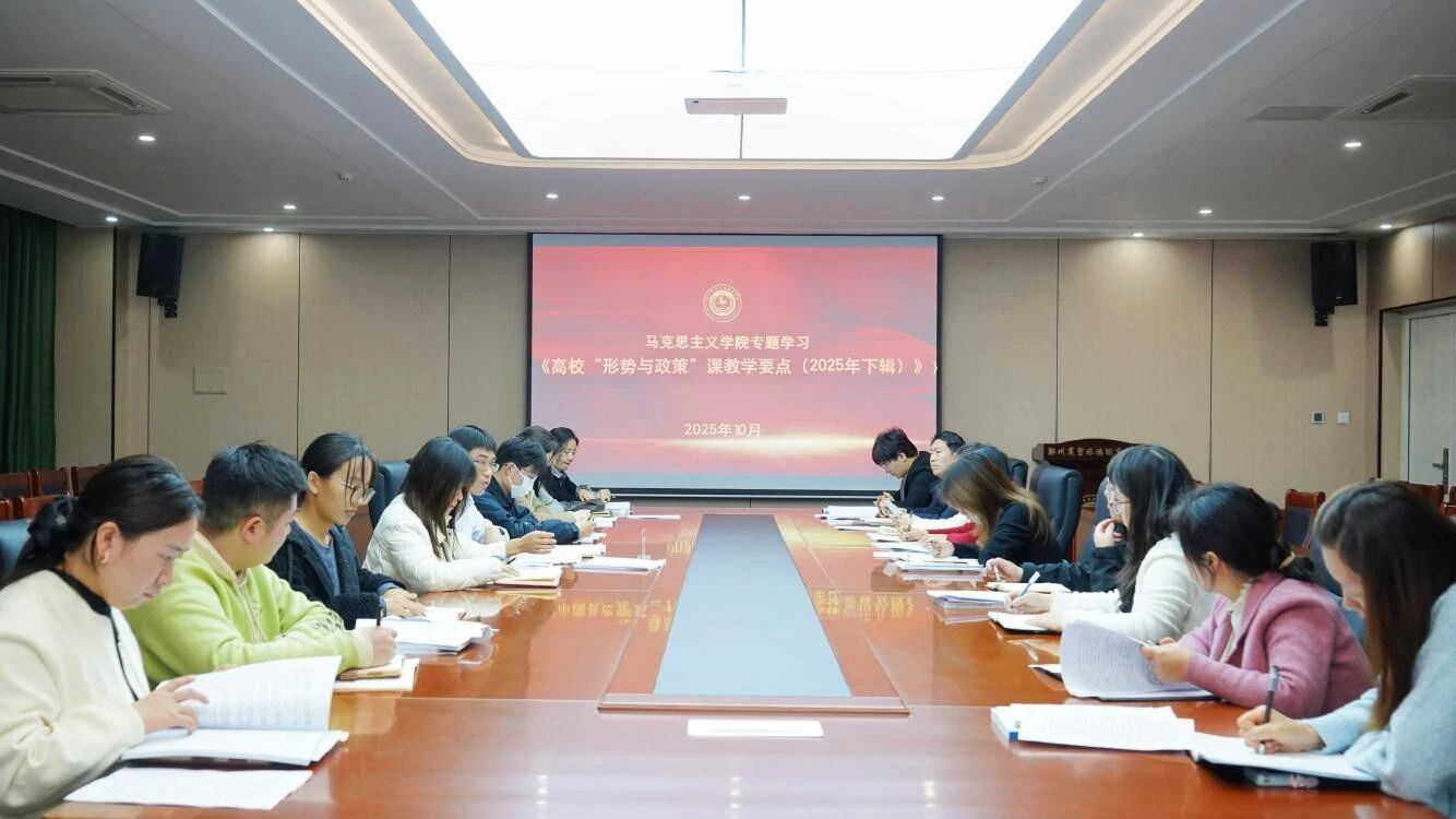 为贯彻落实教育部社科司关于印发《高校“形势与政策”课教学要点(2025年下辑)》的通知要求,近日,我校马克思主义学院按照学校教学计划安排,在新密校区教学楼会议室召开专题学习会议,深入学习相关文件要求。马克思主义学院院长乔辉辉及全体思政课教师参加会议,会议由教学秘书王佳君主持。