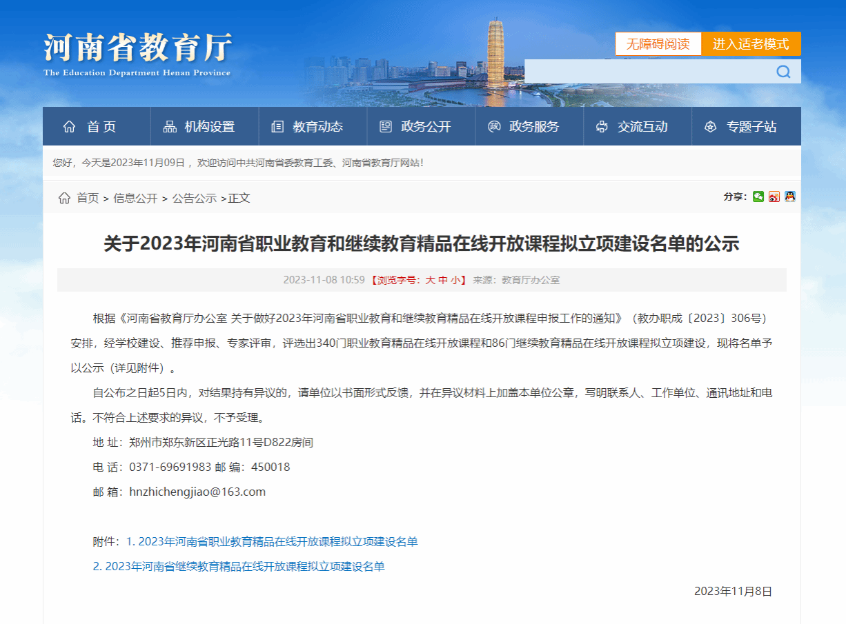 11月8日,河南省教育厅办公室下发了《关于2023年河南省职业教育和继续教育精品在线开放课程拟立项建设名单的公示》,我校财经商贸学院院长王国付教授主持的《财务会计》课程获得立项建设,实现了我校教学质量工程项目在省级层面的新跨越。