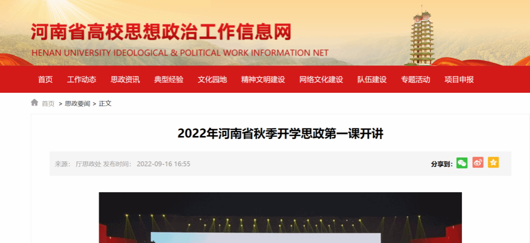 2022年9月15日,以“追寻足迹看我壮丽河山,牢记嘱托践行立德树人”为主题的2022年河南省秋季开学思政第一课开讲。