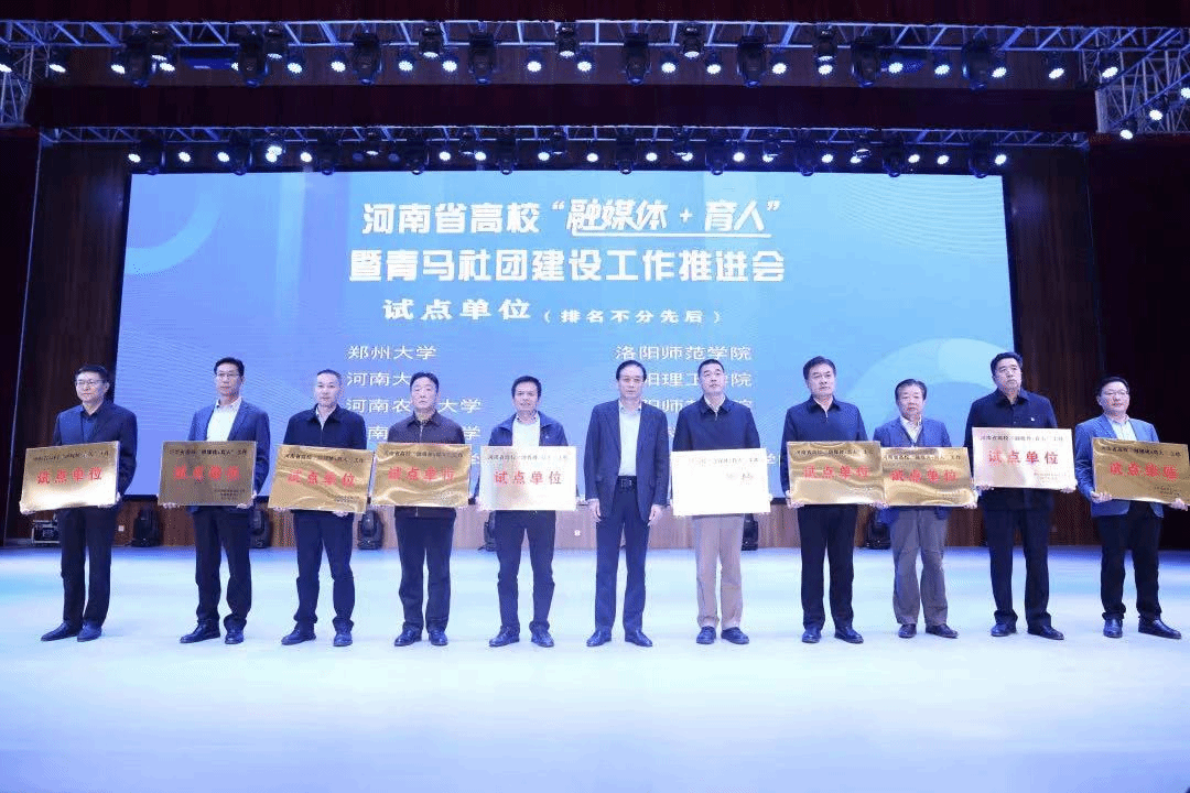 2021年12月15日,河南省高校“融媒体+育人”暨青马社团建设工作推进会上,省教育厅相关负责人为10个试点单位授牌。