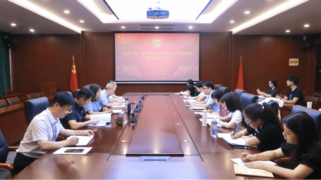 为进一步贯彻落实习近平总书记对学校思想政治理论课建设最新指示精神,更好推动马克思主义学院内涵式建设与高质量发展,6月26日,我校党委书记、校长深入马克思主义学院调研并现场办公。党委宣传部、人事处、教务处等职能部门负责人和全体思政课教师参会。