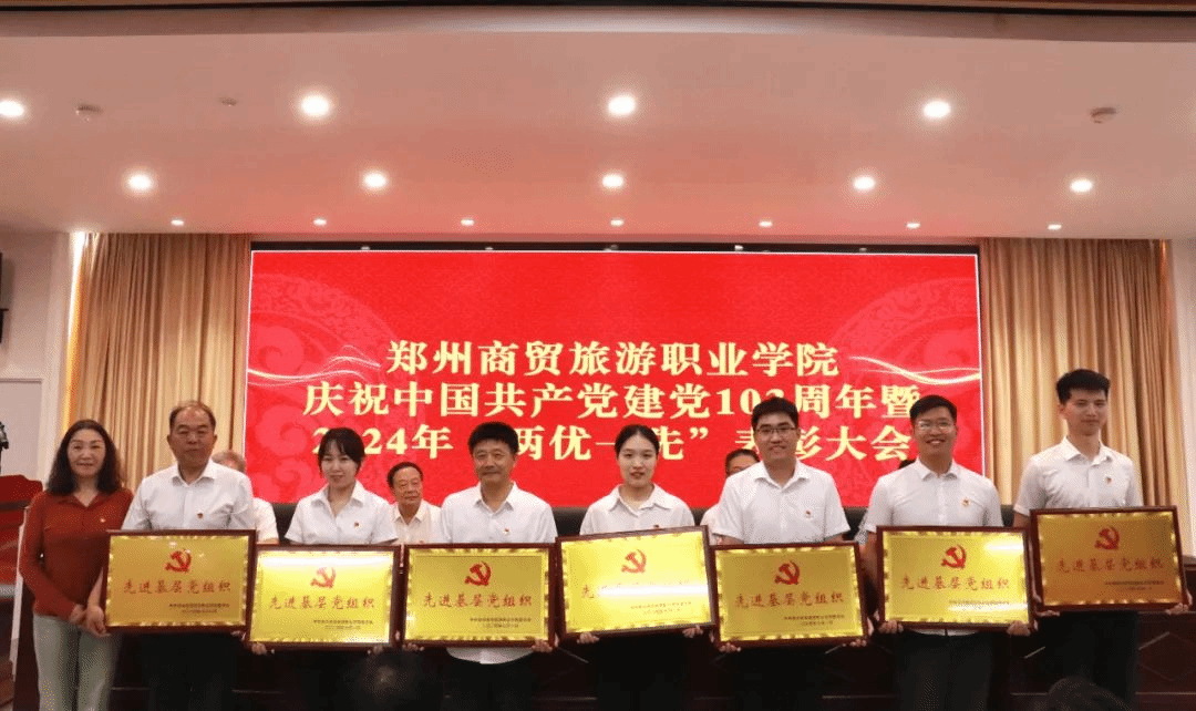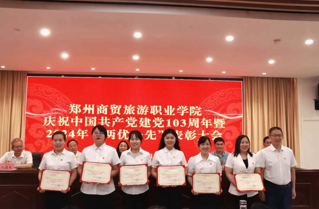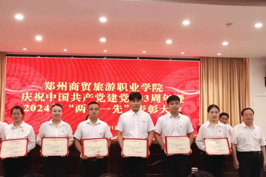 校党委副书记郭林山宣读《中共郑州商贸旅游职业学院委员会关于表彰优秀共产党员、优秀党务工作者和先进基层党组织的决定》。校领导依次为学校优秀共产党员、优秀党务工作者和先进基层党组织代表颁奖。