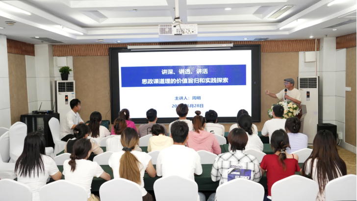 开班仪式后,马克思主义学院邀请周明教授为研修班带来题为《讲深、讲透、讲活思政课道理的价值旨归和实践探索》的专题辅导讲座。周教授以其深厚的理论功底和丰富的教学经验,深入剖析了思政课教学要把握好的“逻辑性、理论性、故事性”三个关键维度。他以生动的案例和深刻的洞见,系统阐述了如何通过创新的教学方式,将思政课中“有意义”的理论知识,转化为让学生感到“有意思”的课堂体验,从而真正激发学生的内在认同和价值共鸣。讲座既有学理深度又有实践温度,为本次实践研修奠定了坚实的理论基础,引发了在场学员的广泛共鸣和深入思考。