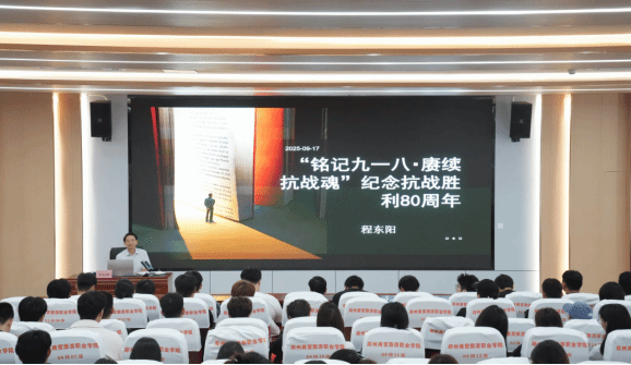 为深入贯彻落实习近平总书记关于弘扬伟大抗战精神的重要论述,扎实推进党史学习教育常态化长效化,9月17日下午,我校在新密校区教学楼学术报告厅1002成功举办“铭记九一八·赓续抗战魂”纪念抗战胜利80周年主题思政课。本次课程由校长程东阳教授主讲,2024级各专业学生干部到场学习。