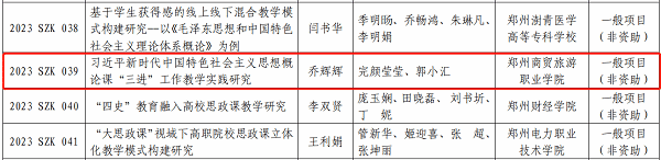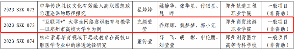 近日,郑州市教育局办公室印发《郑州市教育局办公室关于公布2023年郑州市高等教育教学改革研究与实践项目(思想政治理论课和课程思政)立项结果的通知》(郑教高函【2022 】601 号),我校2个项目获批立项。