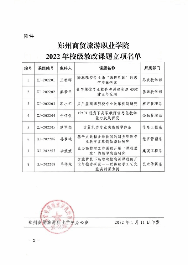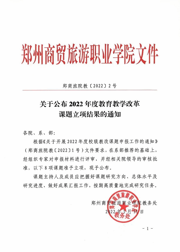 郑州商贸旅游职业学院关于公布2022年度教育教学改革课题立项结果的通知