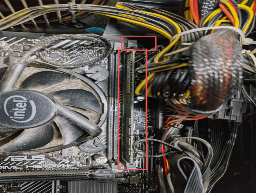 ⑤安装内存条时,听到咔指一声,一边的盖子自动收回,内存条放到底部才算是安装完毕。