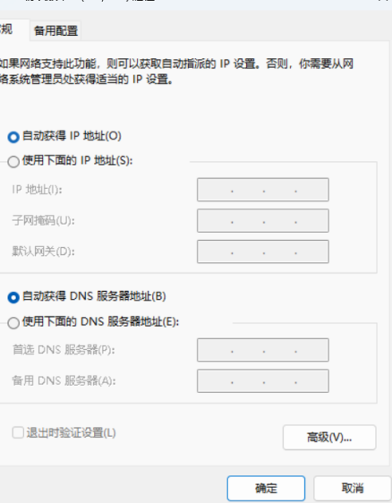 ⑥下边DNS也是设置成自动获取(如果自动获取不行则 选择手动配置,学校里边用的DNS是 114.114.114.114 备用可以不配)