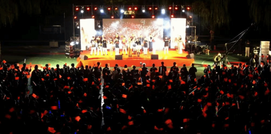 2024年9月,我校新密校区和中原校区举办“庆国庆、迎新生”晚会。跃动的音符穿破夜色,将校园汇成一片赤诚的海洋,近六千名师生在流光溢彩中共同见证了这场家国情怀与青春叙事交织的视听盛宴,为庆祝新中国成立75周年华诞献上郑商旅院青年的深情礼赞。