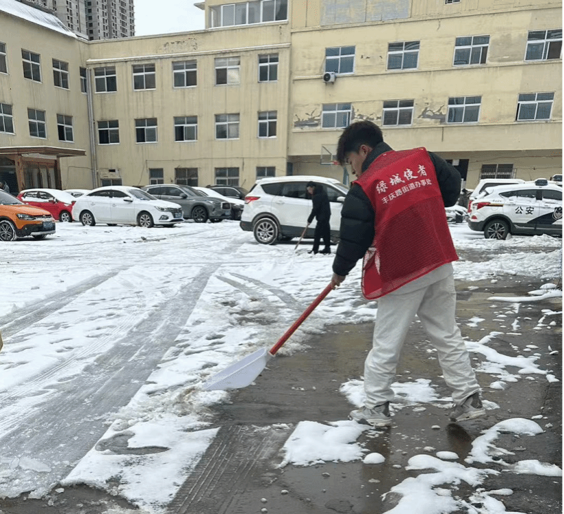 我是2023级工业机器人专业的李梦初,假期服务于金水区丰庆路街道办事处。我的主要工作是为“豫雪”奋战在一线的环卫工们送姜茶,“姜”温暖进行到底。另外,协助街道办工作人员做好园区内卫生打扫、积雪清理等工作。