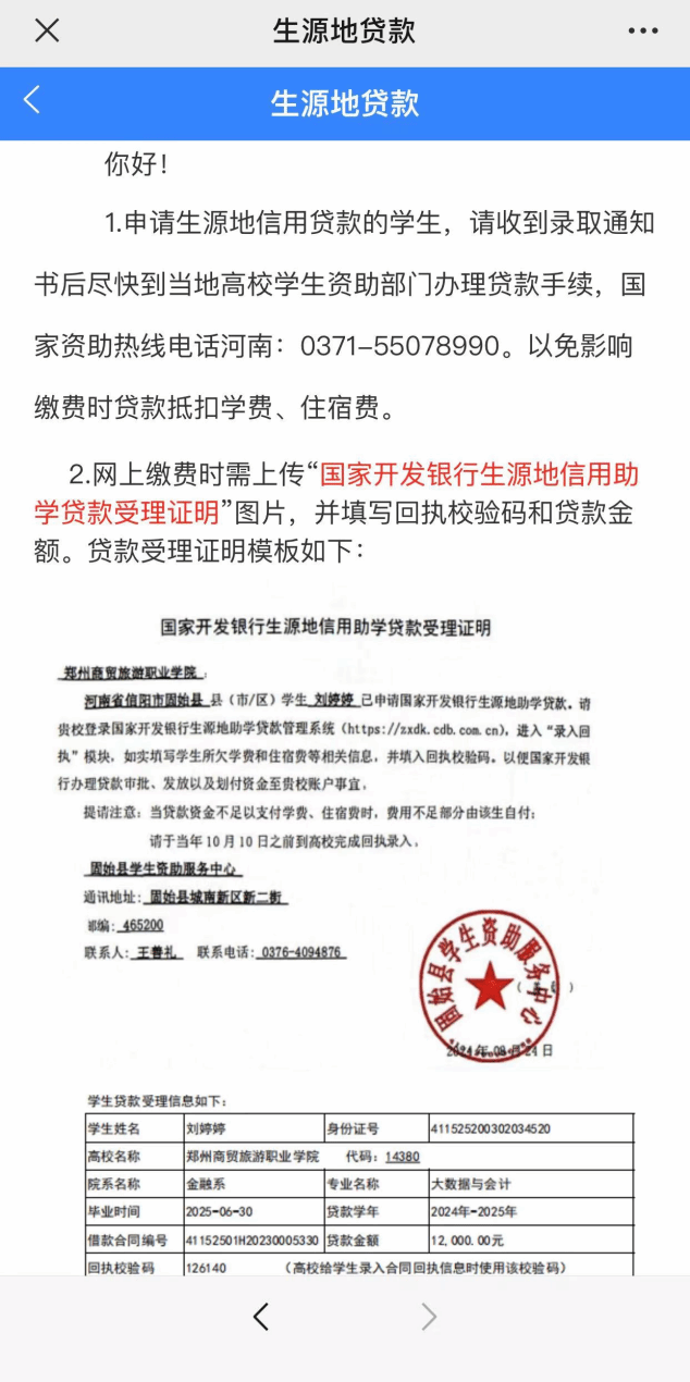 需要贷款的同学请及时向银行申请助学贷款,银行申请通过后需要留存“国家开发银行生源地信用助学贷款受理证明”。