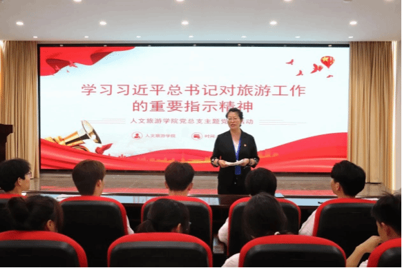 5月21日,人文旅游学院党总支在中原校区学术报告厅组织召开主题党日活动,专题学习近日习近平总书记对旅游工作作出的要指示精神和全国旅游工作会议精神。学院领导、师生代表和学生入党积极分子参加了此次活动。会议由学院党总支书记郭小汇主持。会上,郭小汇传达了习近平总书记对旅游工作的重要指示精神。随后,与会师生观看了5月17日《新闻联播》相关报道,畅谈学习心得体会。1.旅游管理专业校企合作老师 李思豫作为一名校企合作教师,...