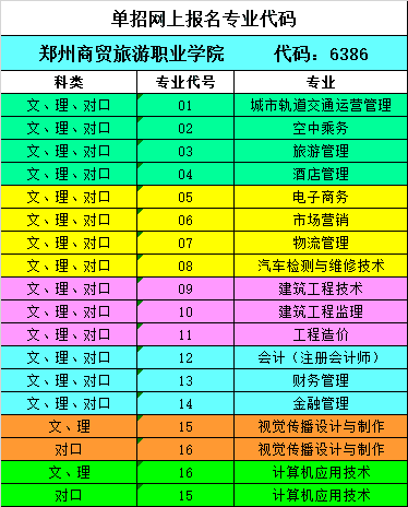 郑州商贸旅游职业学院2017年单独招生章程 第一章 总 则 为深化招生录取制度改革,拓宽优秀人才的选拔渠道,促进学生素质教育的全面提高,根据省教育厅《关于做好2017年河南省高等职业院校单独考试等部分分类考试招生...