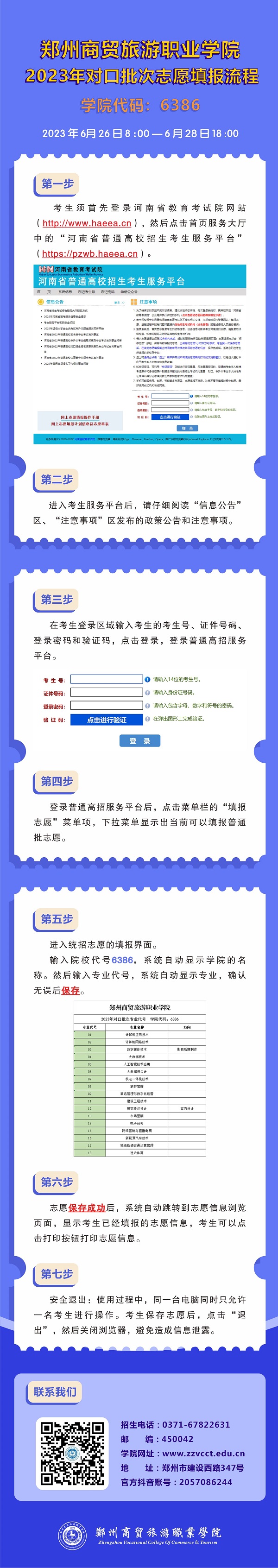 郑州商贸旅游职业学院2023年对口批次志愿填报流程