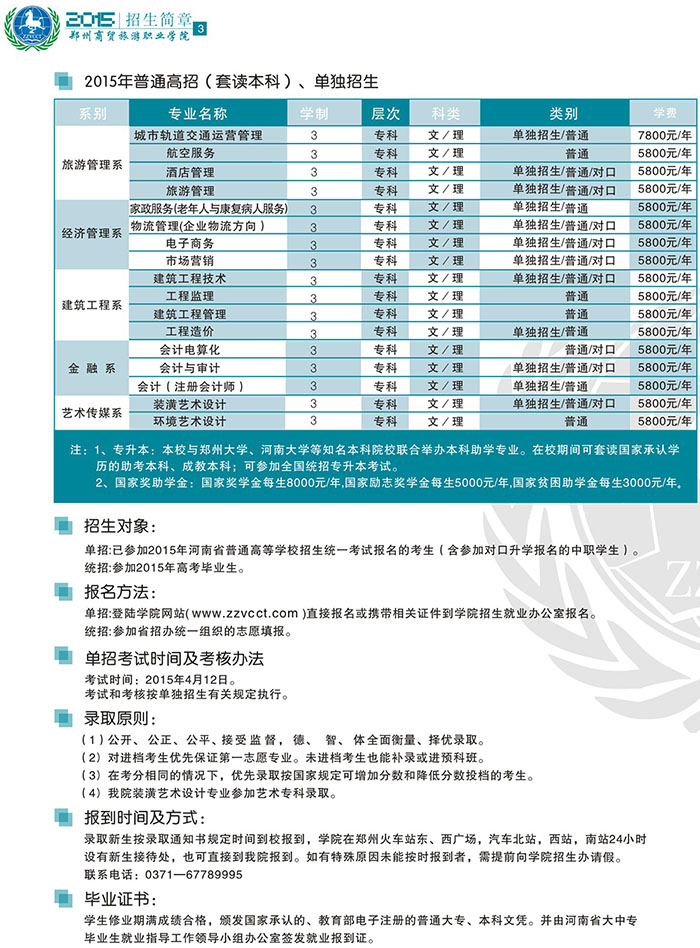 [组图]2015年招生简章(彩页版)——郑州商贸旅游职业学院
