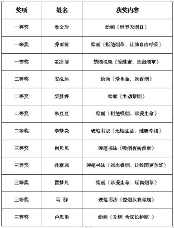 本次活动,经过初审、评委老师评审等环节,共评选出一等奖3名,二等奖4名,三等奖5名,现将获奖名单公布如下: