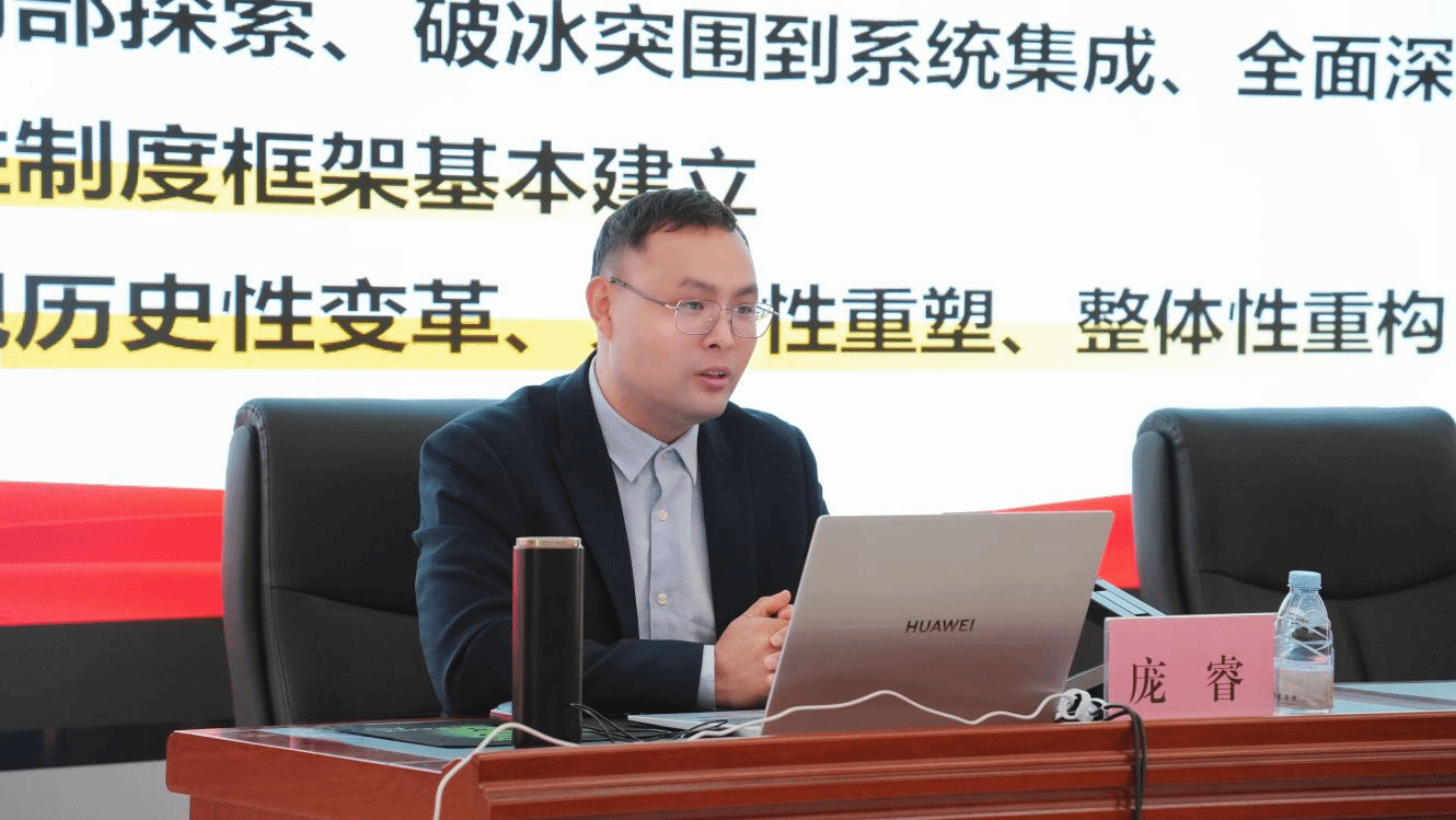 庞睿以《改革的实践续篇 现代化的时代新篇》为题,围绕《中共中央关于进一步全面深化改革、推进中国式现代化的决定》(以下简称《决定》)和习近平总书记在党的二十届三中全会上的重要讲话精神,从“把握历史主动、改革波澜壮阔”“锚定关键领域、擘画改革蓝图”“遵循改革规律、保持战略定力”三个部分,结合历届三中全会及党的二十届三中全会的概况,深入阐释了进一步全面深化改革的重要性和必要性,深刻解读了党的二十届三中全会明确的“七个聚焦”的改革目标、“六个坚持”的重大原则、“十四个方面”的重要部署。他强调,要把学习贯彻全会精神同学习领会习近平总书记关于全面深化改革的一系列新思想、新观点、新论断结合和贯通起来,坚定改革的信念,勇于在改革中创新,坚持在改革实践中创造价值。