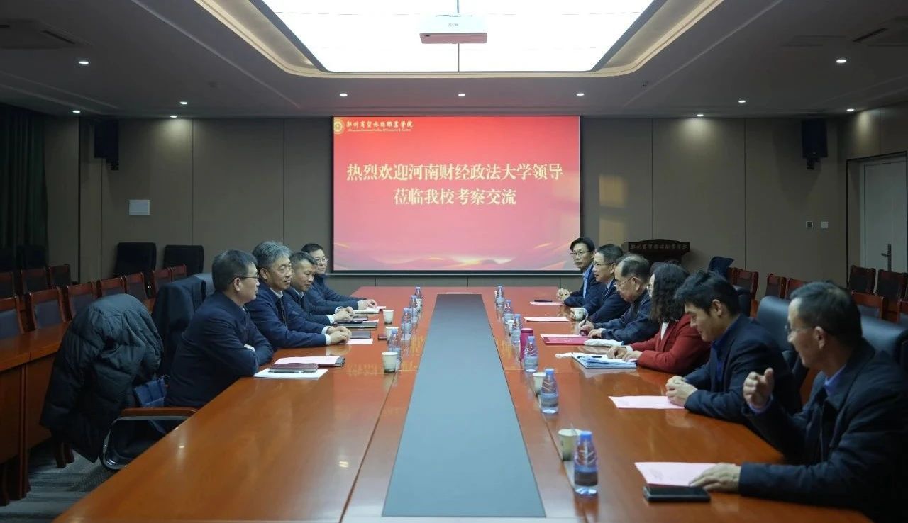 近日,河南财经政法大学党委书记、校长司林胜,河南财经政法大学党政办主任李海松,河南财经政法大学党委组织部部长罗松远,河南财经政法大学党委宣传部副部长郭大鹏一行4人莅临我校新密校区考察交流。我校董事长席青慧、党委书记张睿、校长郭国侠、党委副书记焦永刚、教学副校长冯鑫永、学管副校长康勇、副校长巴玉强陪同参观并参加座谈会。