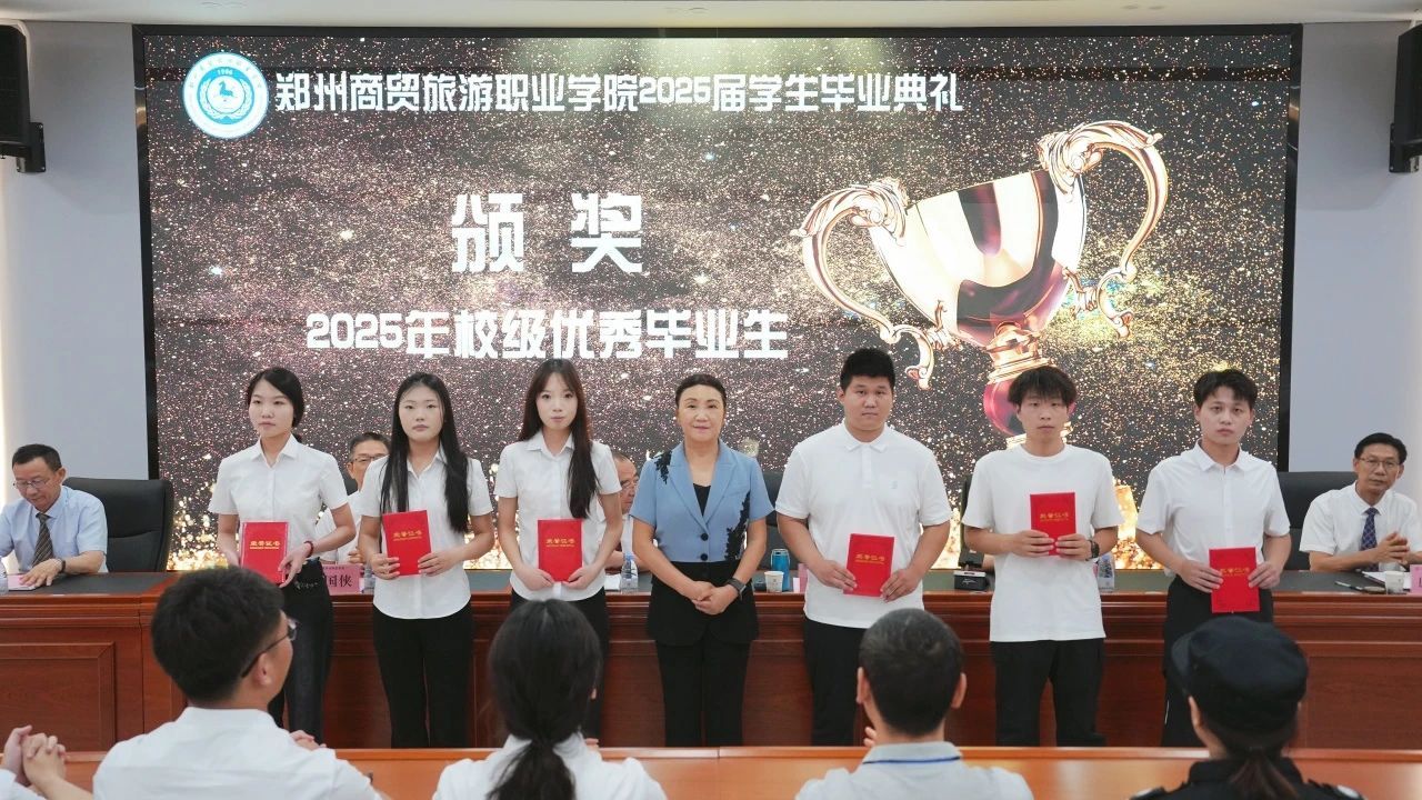 党委副书记焦永刚宣读了《河南省教育厅办公室关于公布2025届河南省优秀大中专毕业生认定结果的通知》《郑州商贸旅游职业学院关于表彰2025届校级优秀毕业生的决定》。