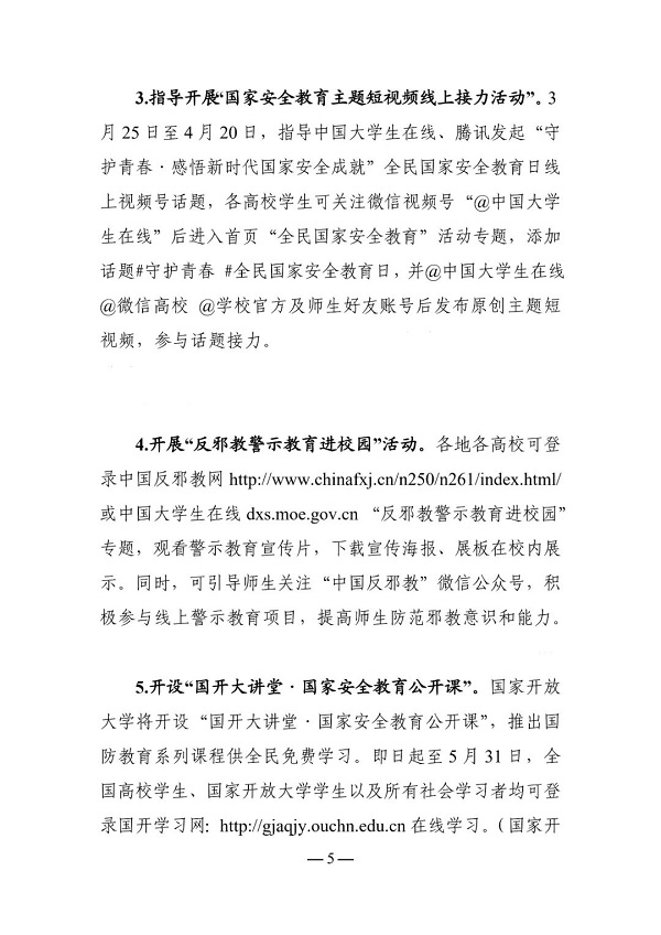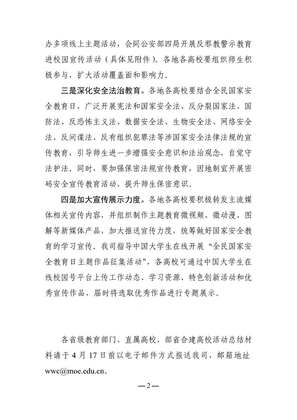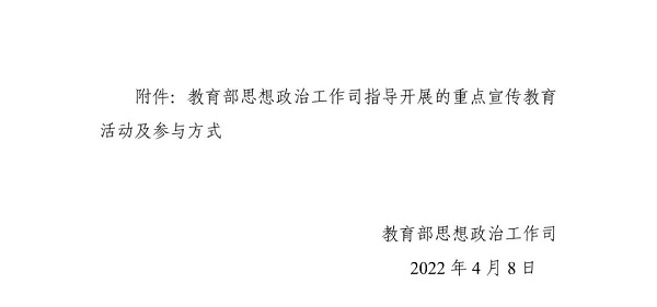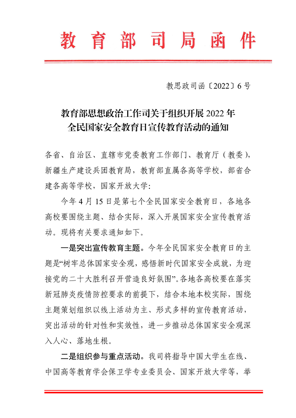 1.教育部思想政治工作司关于组织开展2022年全民国家安全教育日宣传教育活动的通知