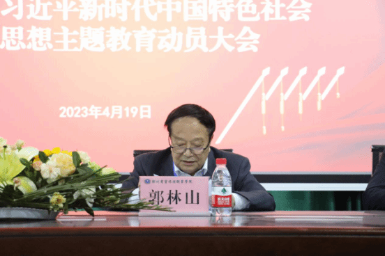 郭林山作动员讲话,就认真组织开展好我校主题教育有关工作,他指出:一要牢牢把握“学思想、强党性、重实践、建新功”的总要求,要全面学习领会习近平新时代中国特色社会主义思想,坚定拥护“两个确立”、坚决做到“两个维护”。二要紧紧锚定凝心铸魂筑牢根本、锤炼品格强化忠诚、实干担当促进发展、践行宗旨为民造福、廉洁奉公树立新风目标任务,坚持学思用贯通、知信行统一,把习近平新时代中国特色社会主义思想转化为坚定理想、锤炼党性和指导实践、推动工作的强大力量。三要全面落实措施,把理论学习、调查研究、推动发展、检视整改、建章立制贯穿始终、一体推进,全力推动各项任务走深走实,坚持边学习、边对照、边检视、边整改,给师生员工切实带来实实在在的变化。