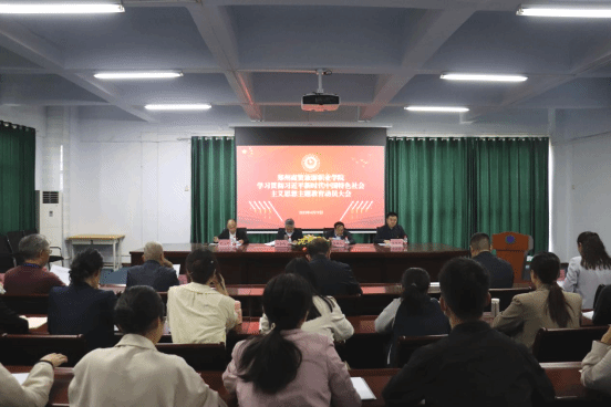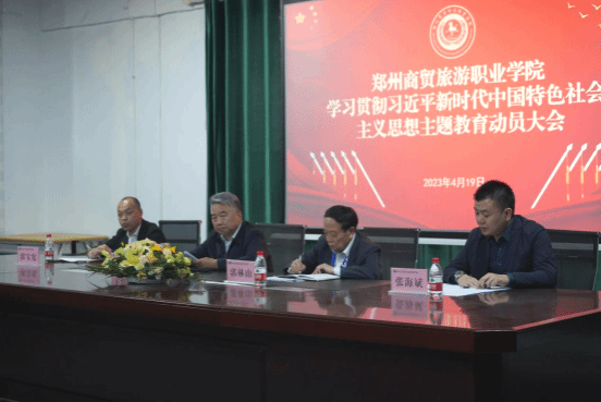 4月19日上午,郑州商贸旅游职业学院召开学习贯彻习近平新时代中国特色社会主义思想主题教育动员大会。河南省委教育工委第六巡回指导组组长、信阳航空职业学院党委副书记王志电,指导组成员刘东洋,唐爱云到会指导。校领导班子及全校中层以上党员干部参加会议。会议由校党委副书记张海斌主持。