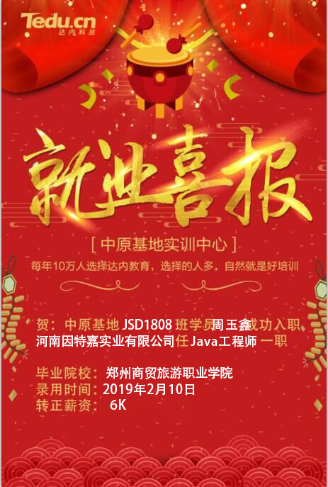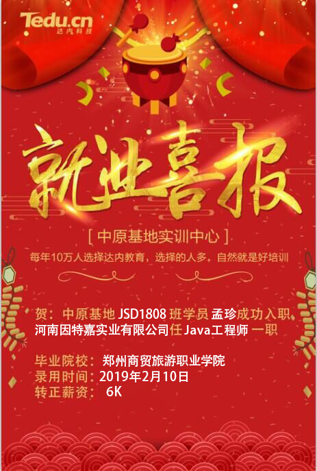 我院2017级达内校企合作订单班学生实训就业喜报:
