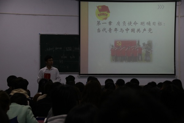 他从新思想、新形式、新目标一一为我们讲述中国共产党的发展历程。从马克思列宁主义、邓小平理论、毛泽东思想、到“三个代表”重要思想、再到新时代的中国特色社会主义思想,又从解放后到改革开放后的新形式。郭书记语重心尝的为我们解释,他还举例子为我们说明,直至我们听懂、明白、了解。