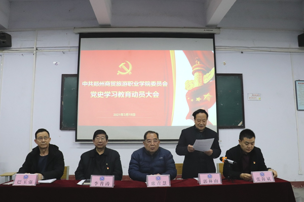 2021年3月18日下午,在我院郑州校区学术报告厅召开党史学习教育动员大会,深入学习贯彻习近平总书记在党史学习教育动员大会上的重要讲话精神,就高标准高质量完成党史学习教育各项任务进行动员部署。党委书记李普涛,董事长席青慧,党委副书记郭林山,副院长巴玉强参会,大会由党委副书记张海斌主持。