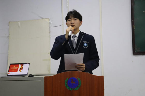 金融系马辰晖作为学生代表发言,他表示,学习党史是为了汲取共产党宝贵的精神财富,党史是一门体系完备的学科,是中国历史不可或缺的一部分,要坚持理论联系实际,先认真学习党史,紧跟党的步伐,秉承科学的态度,做到不唯上、不唯书、只唯实,并把这些新理论、新精神贯彻到我们现实生活中。