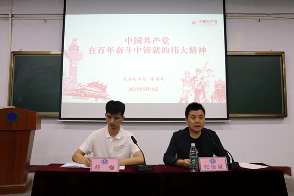 5月10日下午,省委高校工委党建指导员、院党委副书记张海斌在学术报告厅(一)作了题为《中国共产党在百年奋斗中铸就的伟大精神》党史学习教育专题报告会。学院学生党员、发展对象、积极分子300余人参加报告会。会议由院党委办公室任强同志主持。