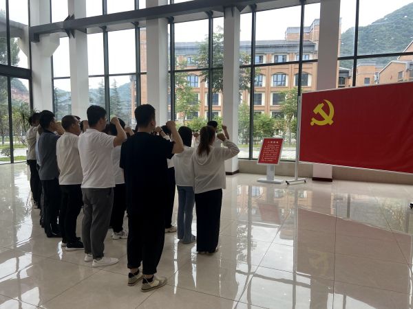 在重温入党誓词现场,党委书记李普涛带领全体党员们重温入党誓词,面对鲜红的党旗,高举右手,宣誓共产党人坚定的理想信念。短短十二句入党誓词,句句千钧,铿锵有力的宣誓声,让党员们再一次接受了深刻的党性教育和灵魂洗礼,坚定一心向党的崇高信念,坚持践行党的宗旨,誓为党和人民的事业奋斗终生。