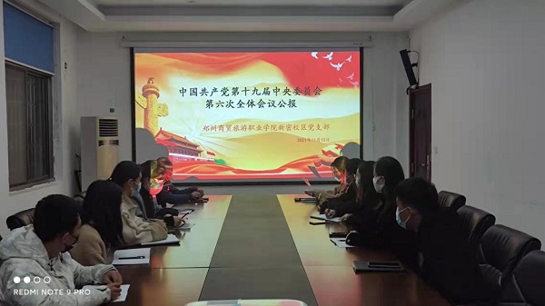 中国共产党第十九届中央委员会第六次全体会议,于2021年11月8日至11日在北京举行,11日,全会通过了中国共产党第十九届中央委员会第六次全体会议公报。11月12日,郑州商贸旅游职业学院新密校区直属党支部在会议室召开学习会议,深入学习贯彻全会精神。新密校区各处室负责人,各院系总支书记、支部书记参加会议,会议由教务处副处长秦若兰主持。