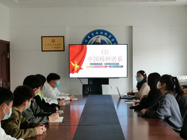 5月14日,郑州商贸旅游职业学院新密校区直属党支部开展《中国精神谱系》专题学习。新密校区教务处骨干教师、主要学生干部参加会议,会议由新密校区直属党支部书记秦若兰主持。