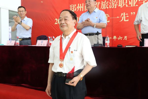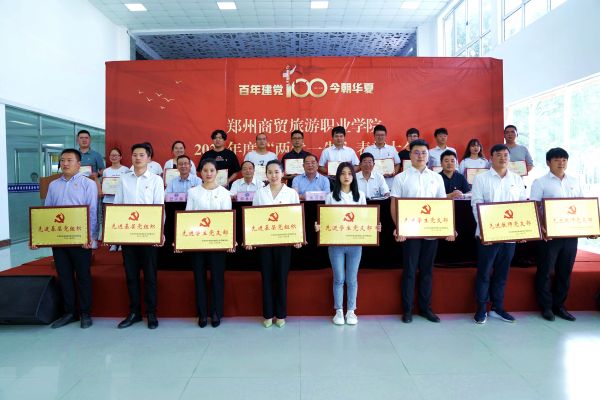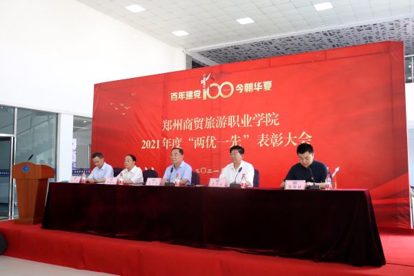 董事长席青慧宣读《中共郑州商贸旅游职业学院委员会关于表彰2021年度先进基层党组织、先进个人的决定》。主席台领导为受到表彰的先进集体代表、先进个人颁奖。根据《决定》,学校党委授予32名同志“优秀共产党员”称号,授予5名同志“优秀党务工作者”称号,授予13个基层党组织“先进基层党组织”称号。