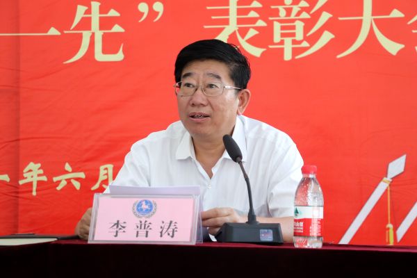 李普涛向受到表彰的优秀共产党员、优秀党务工作者和先进基层党组织表示热烈祝贺,向在全校各个岗位上奋勇争先、无私奉献的师生党员致以节日问候,向为党的事业和学校发展做出贡献的老党员老同志们致以崇高敬意,向始终坚定不移同中国共产党想在一起、站在一起、干在一起的校内各党外人士表示衷心感谢。他表示,“榜样的力量是无穷的”。这次受表彰的集体和个人,就是新时代我校许许多多优秀党员、党务工作者和先进基层党组织的缩影,是看得见的好榜样、好教材。全校各级党组织和广大共产党员要认真学习,要善于挖掘身边的优秀党员事迹,要切实把在工作岗位上兢兢业业、勤勤恳恳奉献的党员选出来,同时要做好先进典型的宣传工作,通过评选表彰,激励广大师生党员发挥模范带头作用,振奋师生员工的精气神。