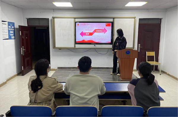 党课活动中,支部书记领学了《习近平总书记论党的青年工作(2022)》,回顾了五四青年节的由来和历史意义,集体观看了纪念五四运动100周年短片《一百年华》、庆祝中国共青团成立100周年宣传片《共青春》主题曲《有我》官方MV。最后,全体与会人员齐听《国际歌》并总结。