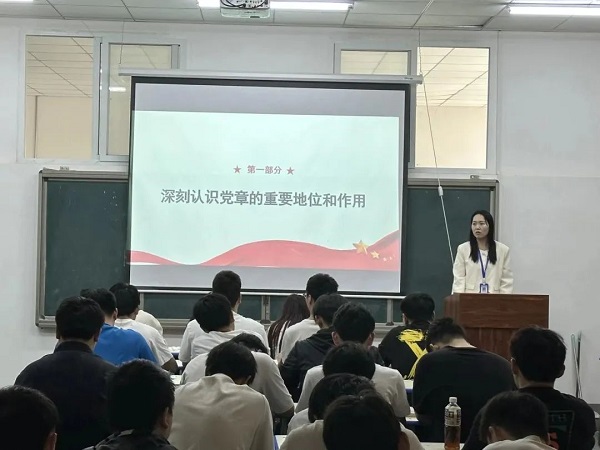 按照中共河南省委教育工委、中共河南省教育厅党组关于深入开展学习贯彻习近平新时代中国特色社会主义思想主题教育的有关安排,为推动学校主题教育走深走实,5月12日下午,艺术传媒系党总支在教学楼3002开展学习贯彻习近平新时代中国特色社会主义思想主题教育专题党课的学习。艺术传媒系党总支书记谷宁宁以《学习新党章 奋进新征程》为题,给支部全体师生党员及入党积极分子上了一堂意义深刻的党课。