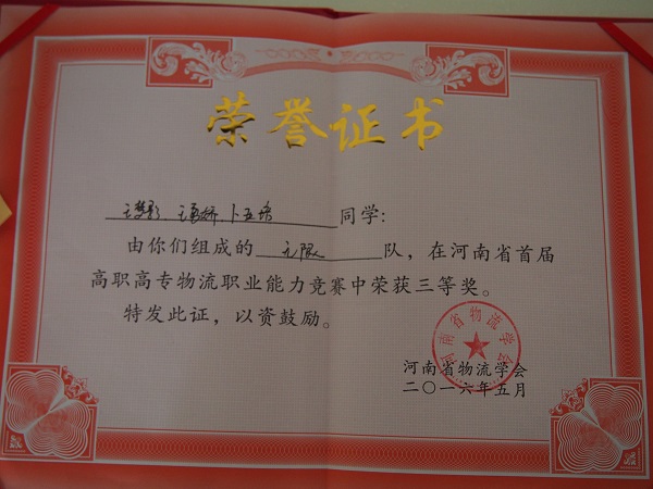 恭喜我院15级物流管理专业学生,参加河南省首届高职高专物流职业能力竞赛,双双获奖。