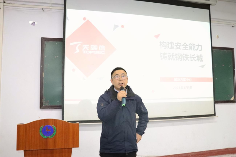 天融信网络安全技术有限公司郭万全总经理,聚焦网络安全和当前防火墙前沿技术,通过图文并茂的生动宣讲,向有志于网络安全服务的学生展示网络了安全、大数据和云服务的发展前景,普及了网络科技知识,强化了网络安全意识。