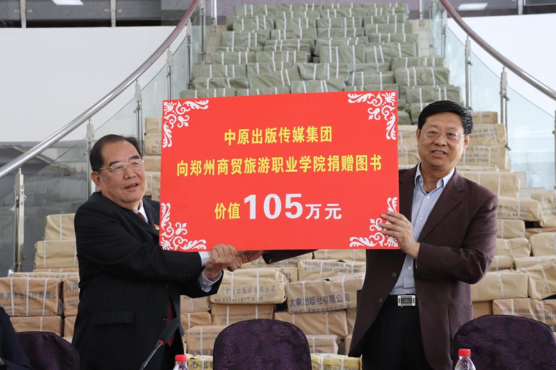 随后,学院董事长、院长席青慧和中原出版传媒集团党委书记、董事长郭元军举行了图书捐赠交接仪式,并致感谢辞。