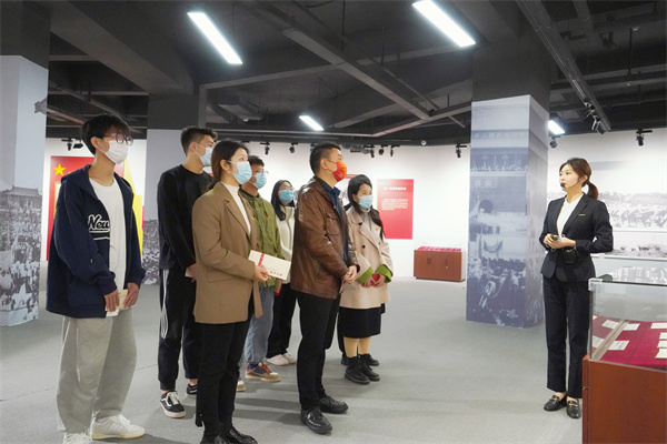 在讲解员的引导下,我校师生驻足观摩每一件珍贵展陈,仔细品味每一个历史节点,全面感受到了旗帜的信仰之光和力量之源。通过300多张照片、100多件档案、4个多媒体视频,党旗、国旗、军旗诞生的光辉历程深刻展现在了在场师生的眼前,大家通过党旗、国旗、军旗的诞生历程展区,在时光流转和激荡变换中再次领略了一百年来中国共产党团结带领全国各族人民为争取民族独立、人民解放,实现国家富强、人民幸福进行的前赴后继、感天动地的奋斗历程。