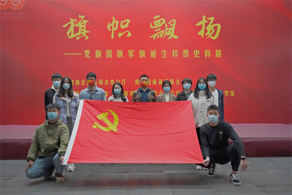 为庆祝中国共产党成立100周年,全面深入学习习近平总书记“七一”重要讲话精神,进一步推动党史学习教育走深走实,根据河南省党史学习教育领导小组办公室有关要求,11月5日上午,我校部分师生党员在学校党委副书记张海斌的带领下来到郑州升达艺术馆,参观了“旗帜飘扬——党旗国旗军旗诞生珍贵史料展”。