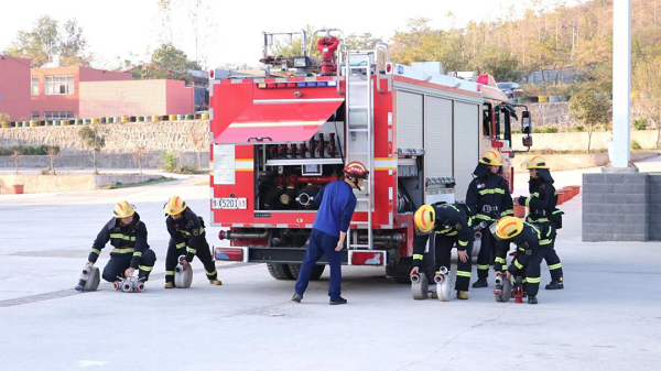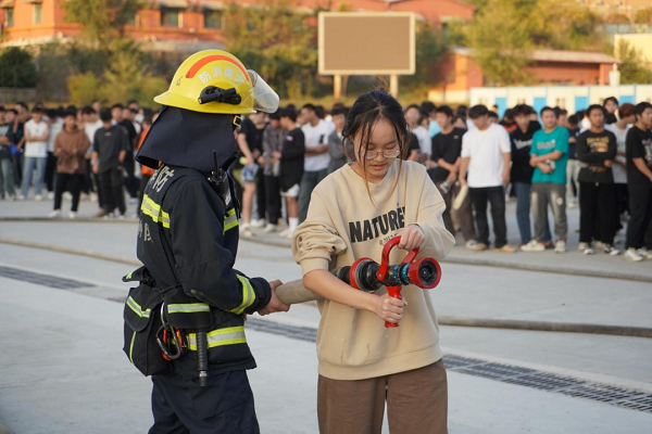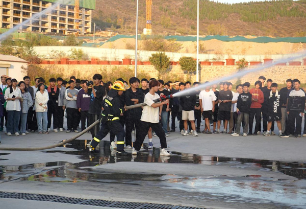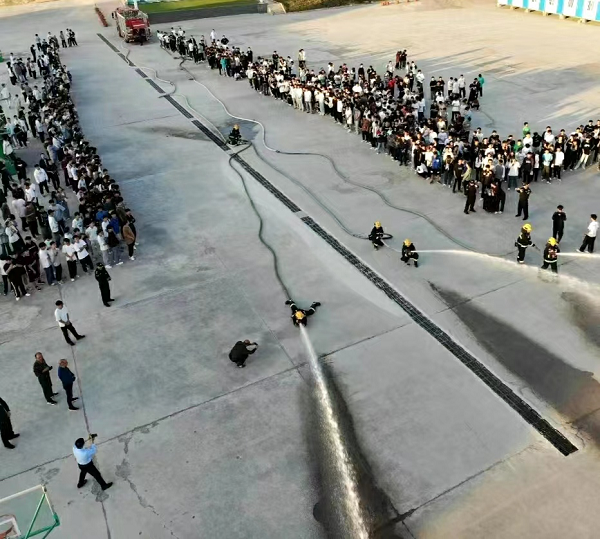 随后,消防战士亲身示范,开展消防战斗服穿戴及注意事项培训,并对一人两盘水带连接、灭火器的使用、实地灭火操作等多项应急程序进行综合演练。在消防官兵示范教学后,教职工代表分组进行了技能竞赛和业务比拼,部分师生、员工代表进行了实地灭火操作,随着火源的熄灭,消防安全演练圆满结束。
